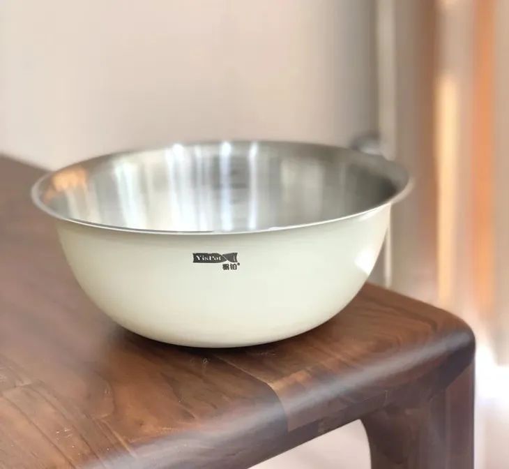 闪闪发亮的不锈钢沙拉盆,因为磨砂质感,让这种奶盖白多了份高级感,连带着厨房也亮堂起来。