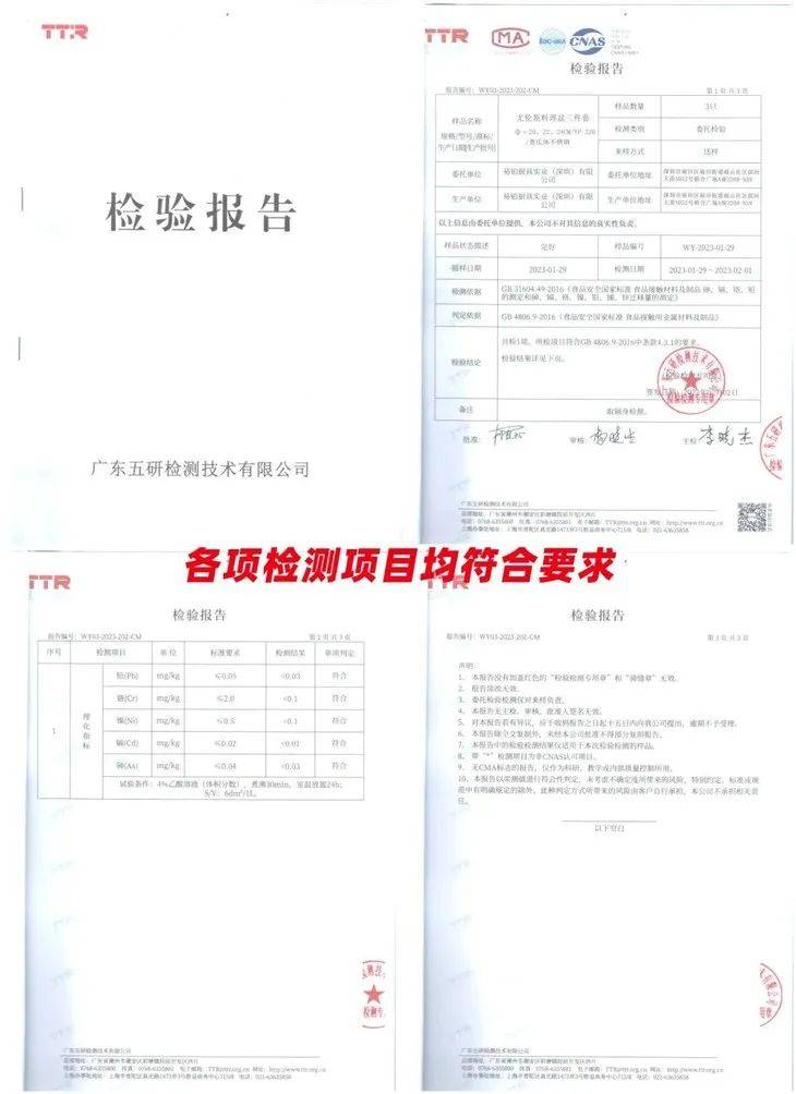经过第三方专业检测,符合GB 4806.9-2016《食品安全国家标准 食品接触用金属材料及制品》的要求,不含BPA,不毛刺,不扎手,使用安全。